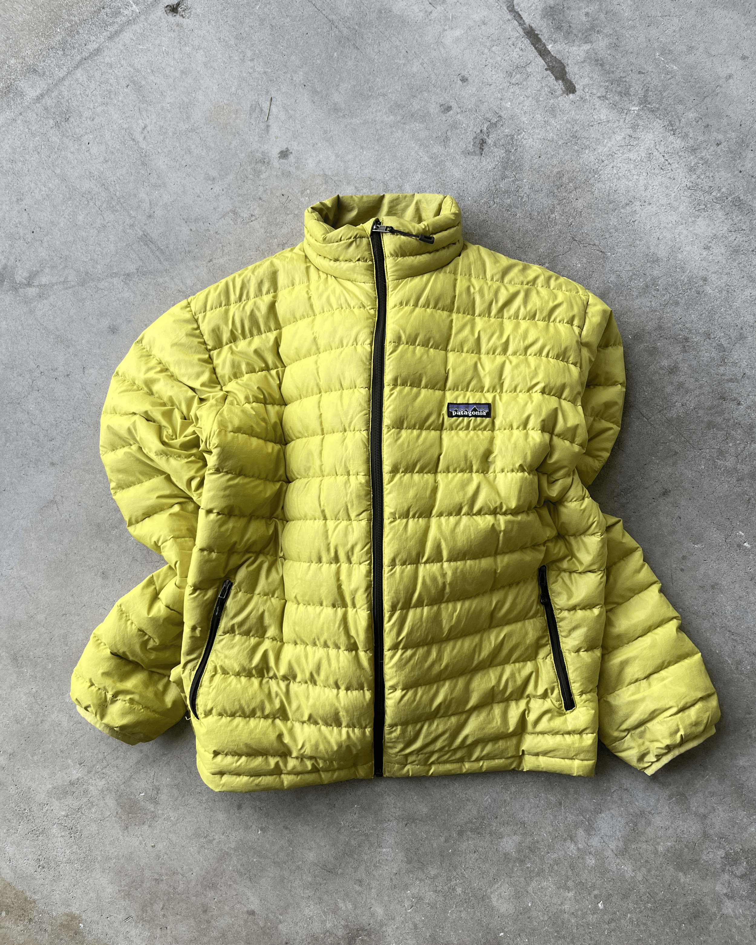 Probably my neon yellow Patagonia down sweater. I got it from Costco almost 15 years ago, back when Costco used to sell Nikes and Patagonia and I just replaced the zippers last year when they broke. Originally it had tonal neon zippers but I decided to go with a contrasting black and I think it really gives the jacket new life.