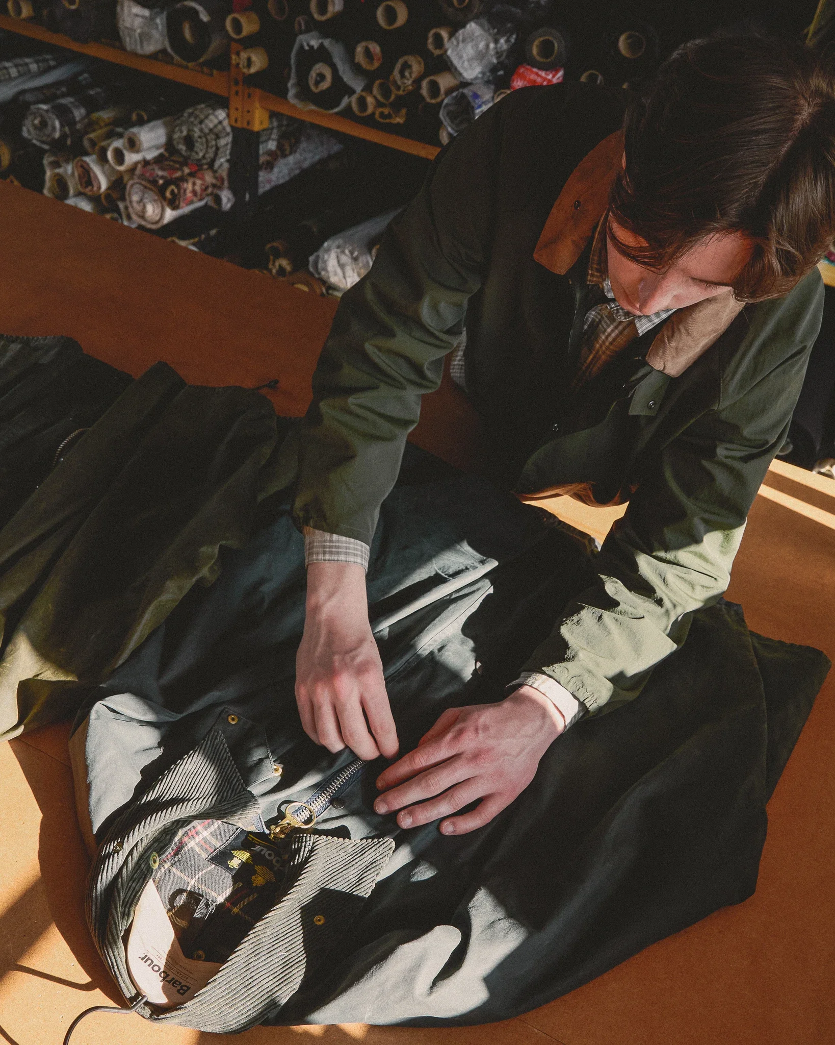 So, when SEVENSTORE asked me to join them on a tour of the Barbour archive room in South Shields, a load of childhood memories came flooding back. And it was those memories that made it very easy to say yes. When we arrived in South Shields, it was bright and sunny. The staff quickly assured us this was an anomaly, and once we stepped into the archive room, that became even more apparent. Heavily used wax jackets — showing the scars and bruises dished out by the weather — hung from a series of rails. Walking into that room was visceral. Every crease, frayed seam and patched elbow held clues of a life once lived.